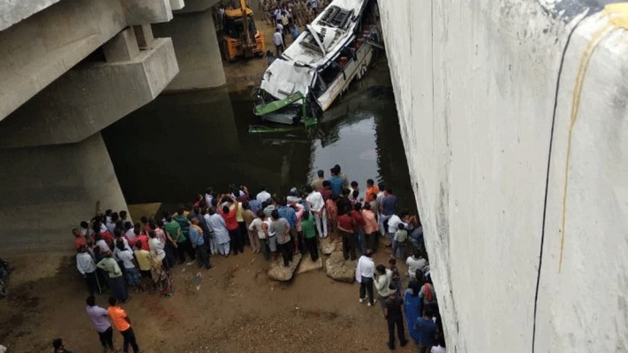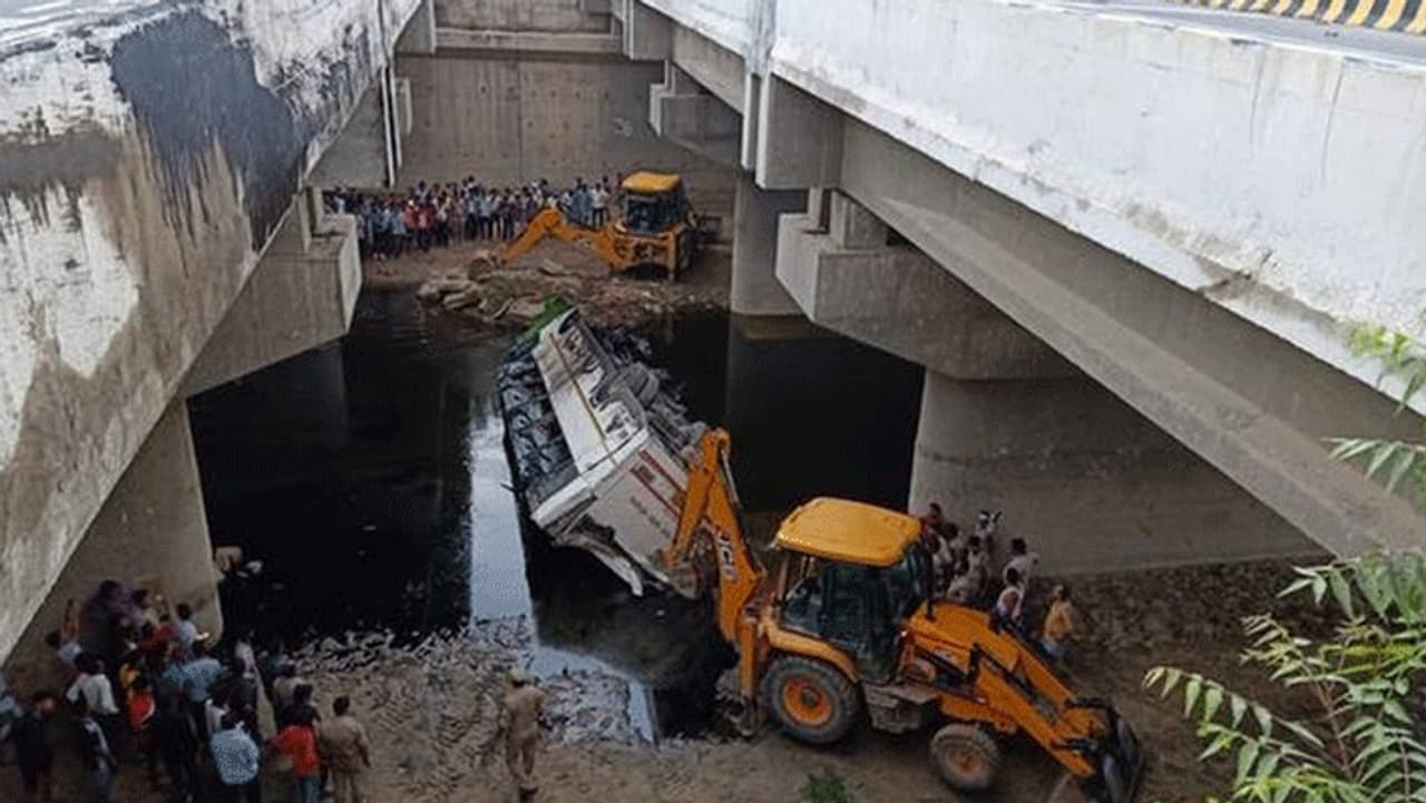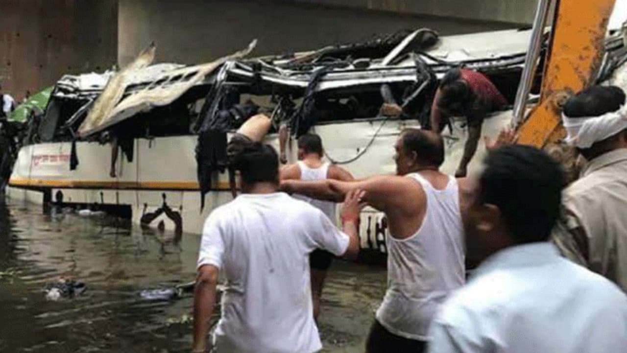 உத்தரபிரதேச மாநிலம் லக்னோவில் இருந்து டெல்லிக்கு 50-க்கும் மேற்பட்ட பயணிகளுடன் அரசு சொகுசு பேருந்து ஒன்று சென்றுக்கொண்டிருந்தது. அப்போது, யமுனா அதிவிரைவு சாலையில் காலை 5 மணிக்கு வேகமாக வந்துக்கொண்டிருந்த போது திடீரென பேருந்து ஓட்டுநரின் கட்டுப்பாட்டை இழந்து தாறுமாறாக ஓடியது. பின்னர், நெடுஞ்சாலையில் உள்ள தடுப்புச் சுவரை உடைத்துக் கொண்டு 15 அடி பள்ளத்தில் உருண்டு கவிழ்ந்து விபத்துக்குள்ளானது.