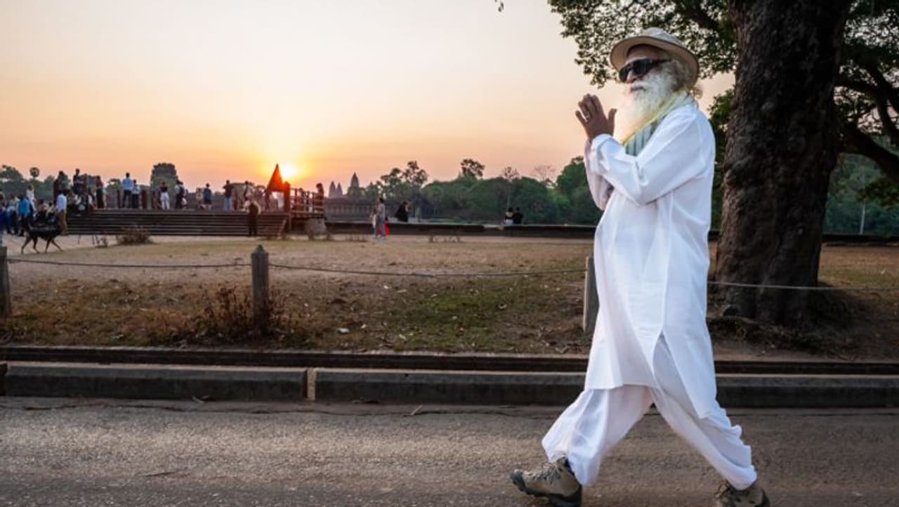 கம்போடியா மக்களின் சார்பாக சத்குருவை வரவேற்று, "உங்கள் தியான அமர்வுகளை நடத்த அங்கோர் தொல்பொருள் பூங்காவைத் தேர்ந்தெடுத்ததற்கு நாங்கள் பெருமைப்படுகிறோம்" என்று எழுதப்பட்டுள்ளது. அறுவைசிகிச்சைக்குப் பிறகு ஒரு மாதத்திற்குப் பிறகு, இந்த விஜயம் சத்குருவின் முதல் நிச்சயதார்த்தத்தை குறிக்கிறது. அங்கு அவர் கலாச்சாரங்கள் மற்றும் கோவில்களின் பின்னால் உள்ள அறிவியல்களை ஆராய்ந்தார்.