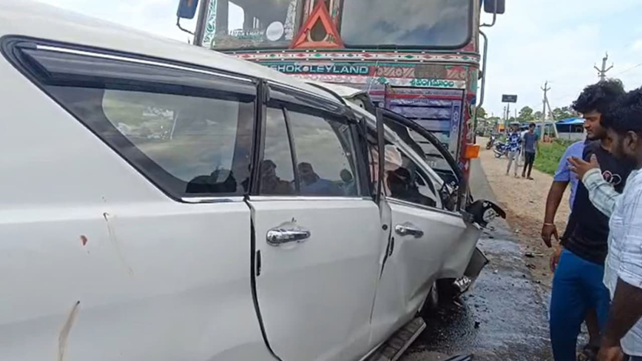 ஆந்திராவில் கோவிலுக்கு சென்று திரும்பிய குடும்பத்தினர் கார் விபத்தில் சிக்கி 6 பேர் உயிரிழந்தனர். லாரி மீது கார் மோதியதில் 2 குழந்தைகள் படுகாயமடைந்தனர்.
