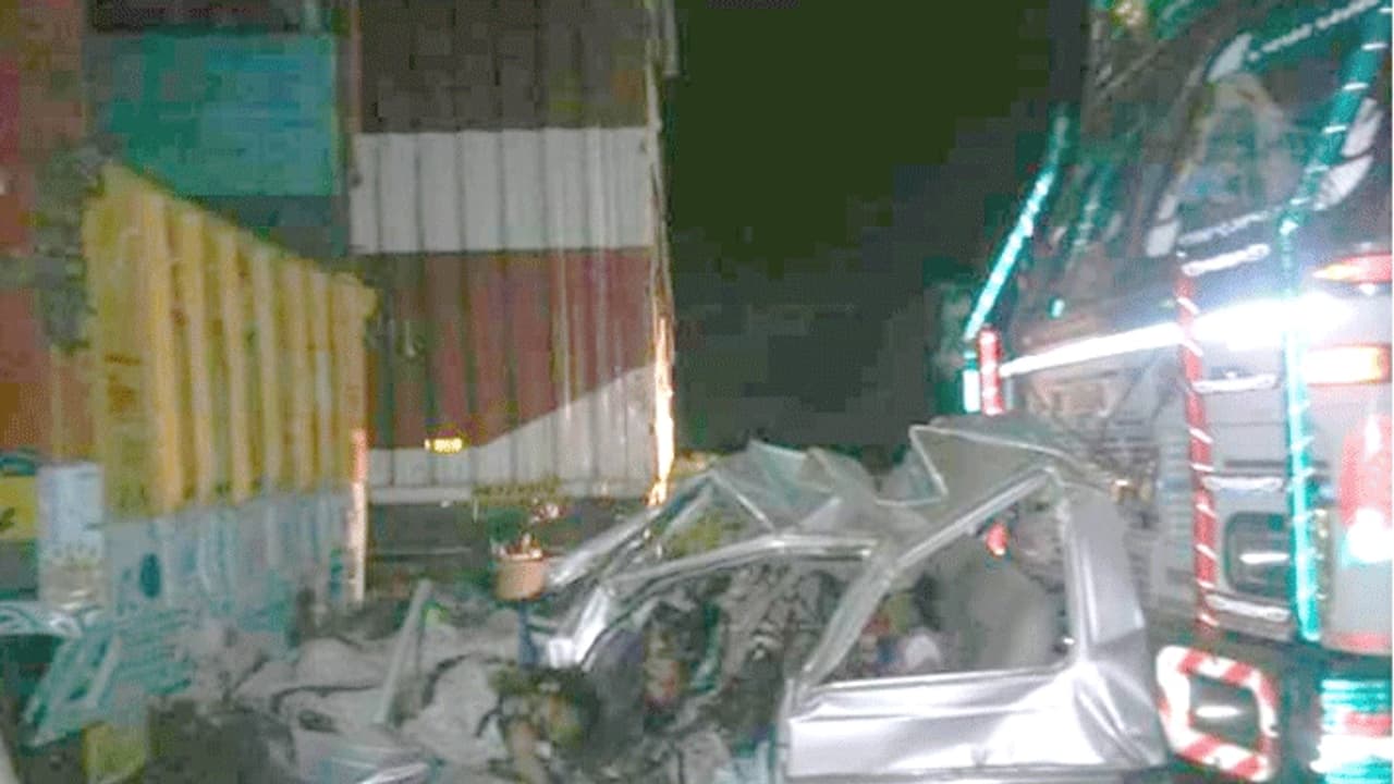 மத்திய பிரதேசம் அருகே கார் மீது மீது மோதி விபத்துக்குள்ளானது. இந்த விபத்தில் ஒரே குடும்பத்தைச் சேர்ந்த 7 பேர் உடல் நசுங்கி சம்பவ இடத்திலேயே உயிரிழந்தனர்.