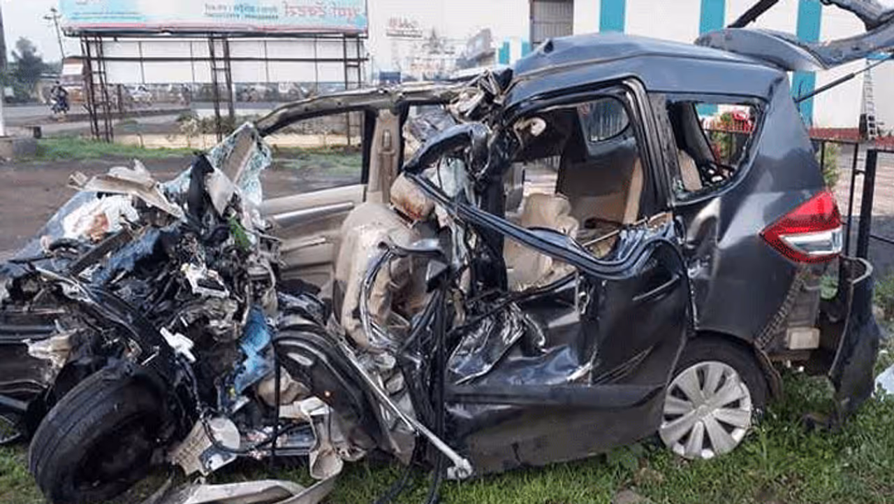 மகாராஷ்டிர மாநிலம் புனேயில் இருந்து சோலாப்பூர் நோக்கி தேசிய நெடுஞ்சாலையில் 9 பேருடன் கார் ஒன்று அதிவேகத்தில் சென்றுக்கொண்டிருந்தது. கார் கடம்வாக் வஸ்தி என்ற பகுதியில் சென்று கொண்டிருந்த போது திடீரென ஓட்டுநரின் கட்டுப்பாட்டை இழந்து சாலையில் தாறுமாறாக ஓடி எதிரே வந்த லாரி மீது நேருக்கு நேர் மோதி விபத்துக்குள்ளானது.