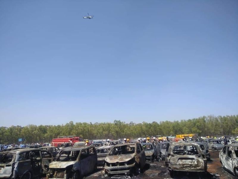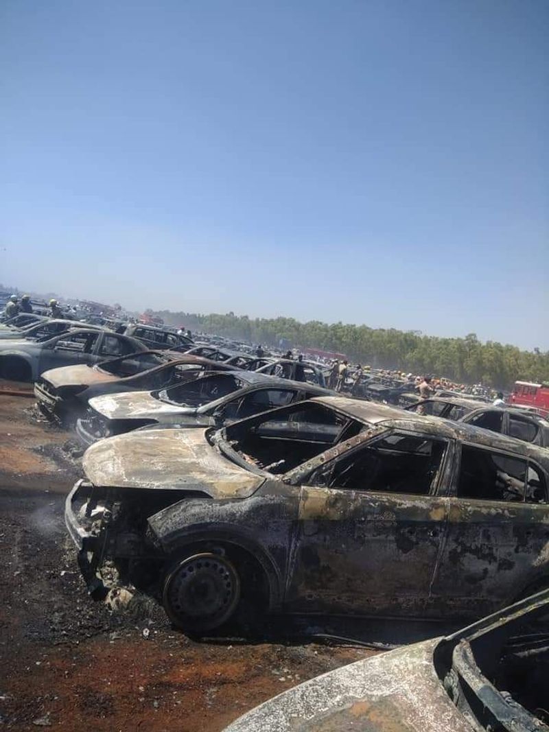 மிகவும் கடினமாக போராடி தீயை அணைக்கப்பட்ட பிறகு கருகி கருவாடான கார்கள் எப்படி காட்சி அளிக்கிறது என்று நீங்களே பாருங்கள்....