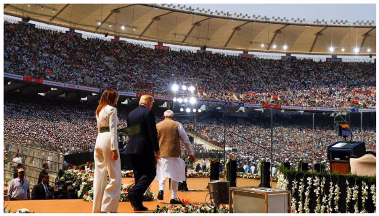 அதன்பின் அகமதாபாத்தில் அமைக்கப்பட்டிருந்த மொடேரா மைதானததில் நமஸ்தே ட்ரம்ப் கூட்டத்தில் பிரதமர் மோடி, ட்ரம்ப் ஆகியோர் பங்கேற்றனர்.அதன்பின் ஆக்ரா, டெல்லி சென்றுவிட்டு, அங்கிருந்து ட்ரம்ப் புறப்பட்டார்.