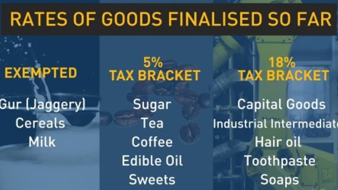 ஒட்டுமொத்தமாக 1200 வகை பொருட்களில் 7 சதவீத பொருட்களுக்கு வரிவிலக்கு அளிக்கப்பட்டுள்ளது. 14 சதவீத பொருட்களுக்கு மிகக்குறைவாக 5சதவீத வரியும், 17சதவீத பொருட்களுக்கு 12 சதவீத வரியும், 43 சதவீத பொருட்களுக்கு 18 சதவீத வரியும், 19 சதவீத பொருட்களுக்கு அதிகபட்சமாக 28 சதவீதம் வரியும் விதிக்கப்பட்டுள்ளது. ஒட்டுமொத்தமாக பார்த்தால், 81 சதவீத பொருட்கள் 18 சதவீதம் வரிக்குள்ளாகவே கொண்டு வரப்பட்டுள்ளன.