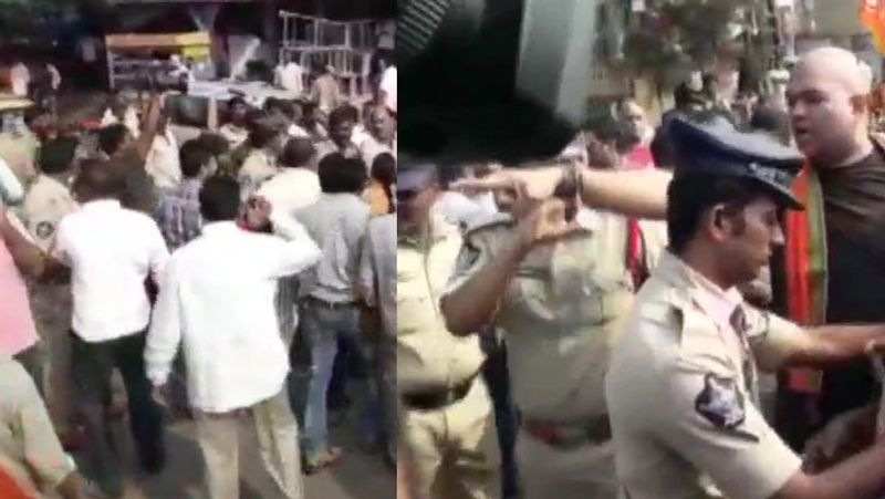 பிரதமர் மோடியின் பெயரை வெளியே சென்று சொன்னால் மக்கள் உங்களை சும்மா விடமாட்டார்கள். எனவே ஜாக்கிரதையாக இருங்கள். ஆந்திராவில் மோடியை ஆதரிப்பதற்கு பாஜக-வினர் வெட்கப்பட வேண்டும் என்றார். ஆனால், பாஜகவினர் தொடர்ந்து போராட்டத்தில் ஈடுபட்டதால், அவர்களை போலீஸார் அதிரடியாக கைது செய்தனர்.