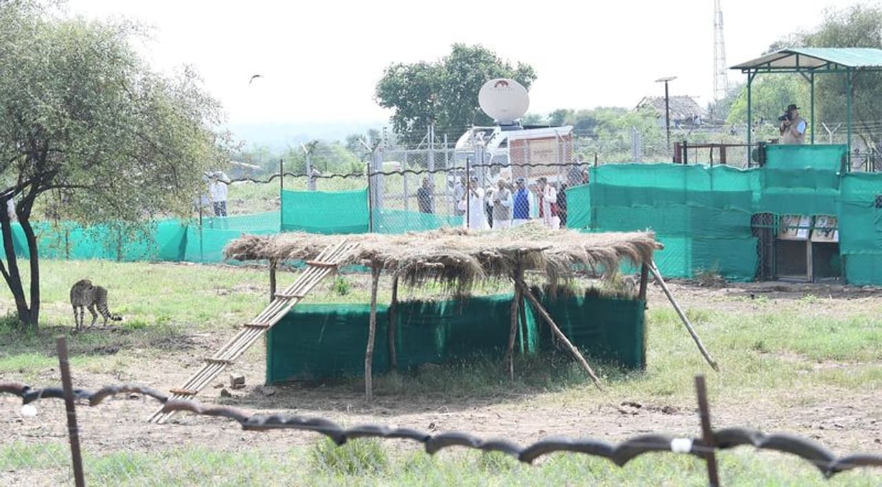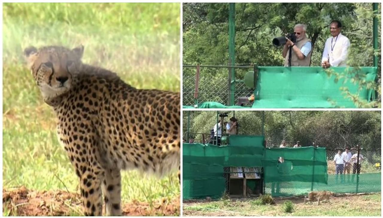நமீபியாவிலிருந்து 8 சீட்டா ரக சிறுத்தைப் புலிகள் இந்தியாவுக்கு கொண்டுவரப்பட்டுள்ளன. அதில் 3 சீட்டாக்களை மட்டும் இன்று பிரதமர் மோடி வனத்துக்குள் திறந்துவிட்டார்