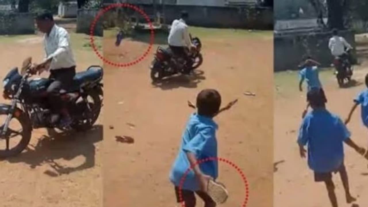 இந்நிலையில், அண்மையில் அந்த ஆசிரியர் வழக்கம்போல் பள்ளி குழந்தைகளை தகாத வார்த்தைகளால் திட்டியுள்ளார். இதனால், ஆத்திரமடைந்த பள்ளி குழந்தைகள் செருப்புகளை எடுத்து ஆசிரியர் மீது வீச தொடங்கினர். அடுத்தடுத்து செருப்புகள் பறந்து வந்ததால் அந்த ஆசிரியர் தனது இருசக்கர வாகனத்தை எடுத்துக் கொண்டு தப்பிக்க முயற்சித்தார்.