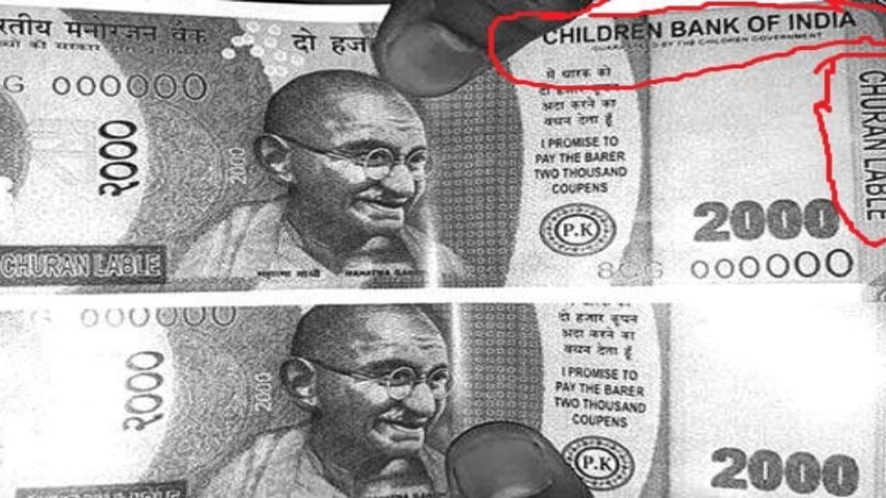 போலீசார் அந்த பணத்தை பெற்று ஆய்வு செய்தனர். அதில், ரிசர்வ் பேங்க் ஆப் இந்தியா என குறிப்பிடாமல், சில்ட்ரன்ஸ் பேங்க் ஆப் இந்தியா என்றும், ரிசர்வ் வங்கி குறியீட்டுக்கு பதிலாக பி.கே. என்று அச்சிடப்பட்டு இருந்தது. மேலும், ரூபாய் நோட்டின் வலது ஓரத்தில் "வாட்டர் மார்க்' பகுதியில் "சுரான் லேபிள்' என்று அச்சிடப்பட்டிருந்தது.
