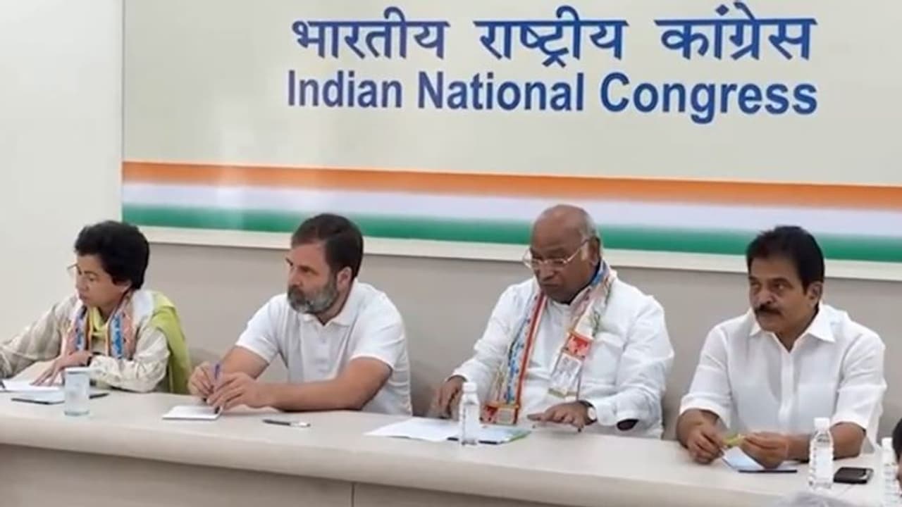 டெல்லியில் உள்ள காங்கிரஸ் கட்சியின் தலைமையகத்தில் நடைபெற்ற இந்த கூட்டத்தில், காங்கிரஸ் கட்சியின் முன்னாள் தலைவர் ராகுல் காந்தி, சத்தீஸ்கர் முதல்வர் பூபேஷ் பாகேல், மாநில பொறுப்பாளர் குமரி செல்ஜா, பொதுச்செயலாளர் கே.சி.வேணுகோபால் உள்ளிட்ட தலைவர்கள் கலந்து கொண்டனர்.