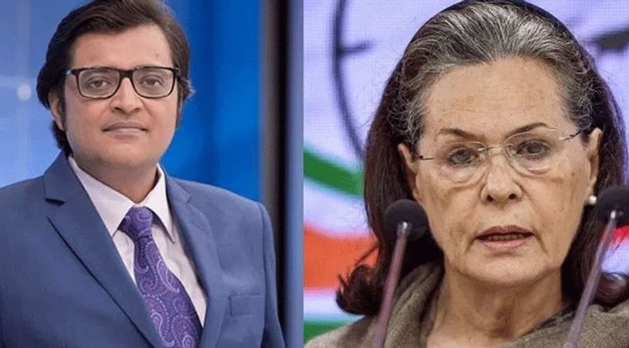 அப்போது திடீரென காங்கிரஸ் இடைக்கால தலைவர் சோனியா காந்தியை இச்சம்பவத்தில் தொடர்புபடுத்தி அர்னாப் கோஸ்வாமி விமர்சித்தாக கூறப்படுகிது. இவரது பேச்சுக்கு காங்கிரஸ் தலைவர்கள் கடும் கண்டனம் தெரிவித்திருந்தனர். அவரை கைது செய்யக்கோரி காங்கிரஸ் தொண்டர்கள் போராட்டத்தில் ஈடுபட்டனர்.