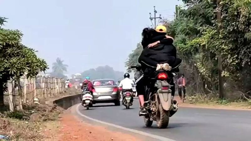 இளைஞர் பைக் ஓட்டிக்கொண்டிருக்க, அருகில் அமர்ந்திருக்கும் பெண் அவரை கொஞ்சியபடியே வருகிறார். இந்த வீடியோ சமூக வலைத்தளங்களில் வைரலாகி வருகிறது.