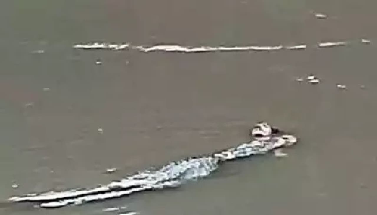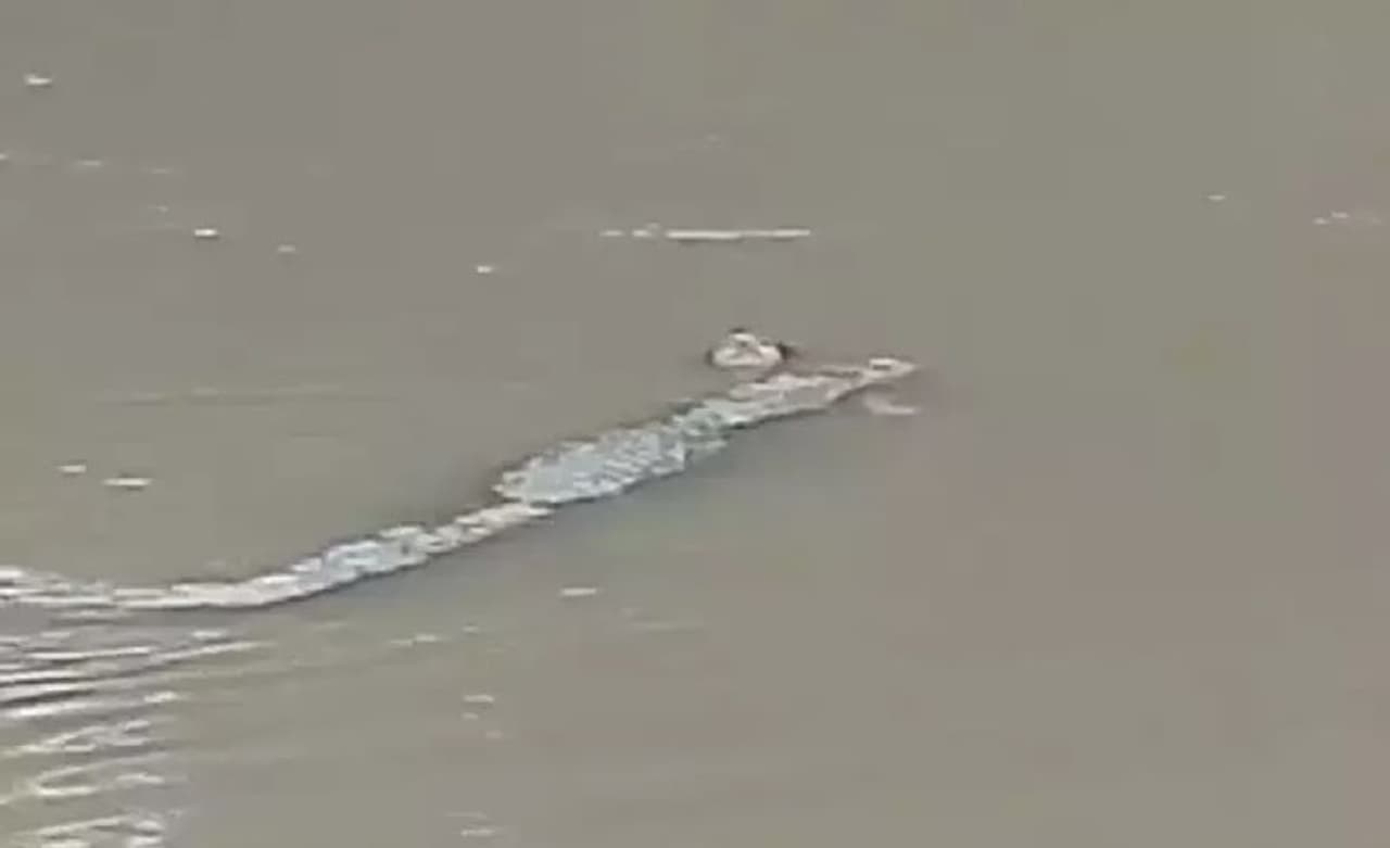 குஜராத் மாநிலம் பத்ரா தாலுகாவில் உள்ள சோக்தரகு கிராமத்தில் மனித உடலை கடித்தவாறு முதலை ஒன்று ஆற்றில் நீந்திய வீடியோ சமூக வலைதளங்களில் வைரலாக பரவி வருகிறது.
