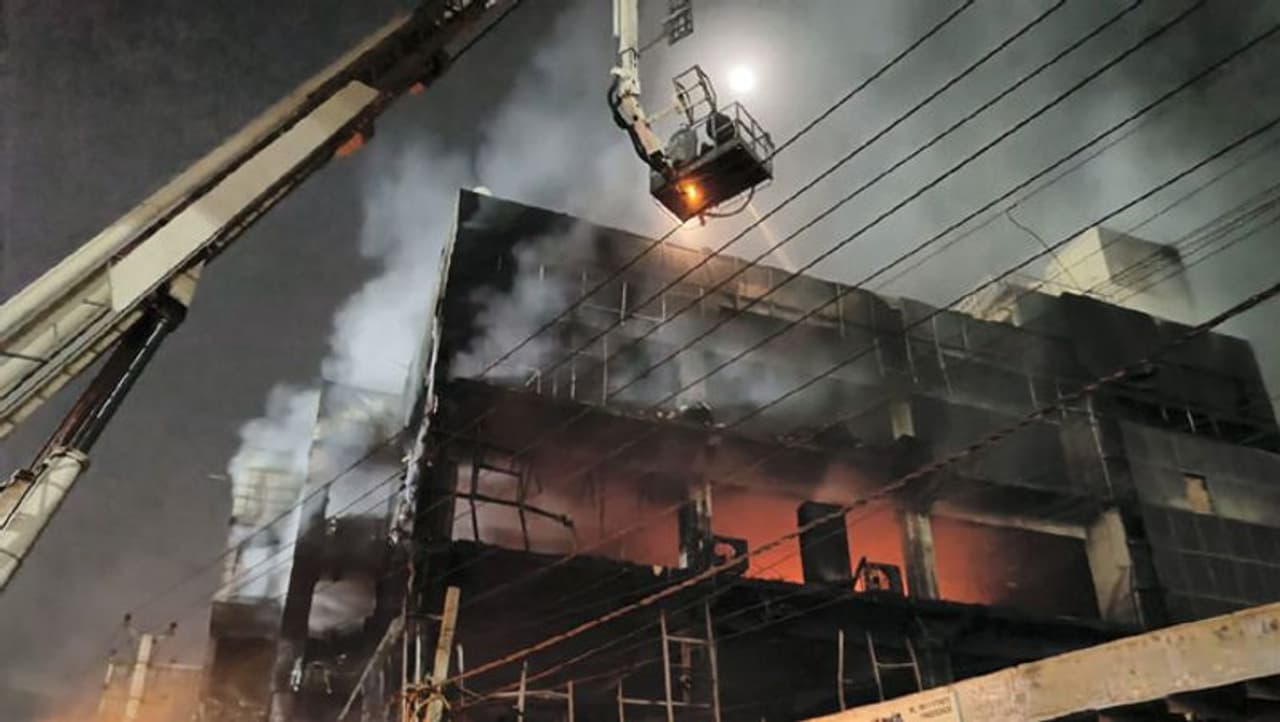 இதனிடையே, தீ விபத்தில் இருந்து தங்கள் உயிரை காப்பாற்றிக்கொள்ள பலர் ஜன்னல் வழியாகவும், கயிறு மூலமாக கீழே குதித்தனர். இந்த தீ விபத்து தொடர்பாக போலீசார் வழக்குப்பதிவு செய்து விசாரணை நடத்தியதில் கட்டிடத்தின் முதல் மாடியில் உள்ள சிசிடிவி கேமரா மற்றும் ரவுட்டர் தயாரிக்கும் நிறுவனத்தின் அலுவலகத்தில் இருந்து தீ விபத்து ஏற்பட்டதாக கூறப்படுகிறது. இந்த தீ விபத்து தொடர்பாக கட்டிட உரிமையாளர்கள் ஹரிஸ் கோயல் மற்றும் வருண் கோயல் ஆகிய 2 பேர் கைது செய்யப்பட்டுள்ளனர். வணிக வளாகத்திற்கு தீயணைப்பு துறையிடம் இருந்து அனுமதிச்சான்று வாங்கவில்லை என்ற தகவல் வெளியாகியுள்ளது.
