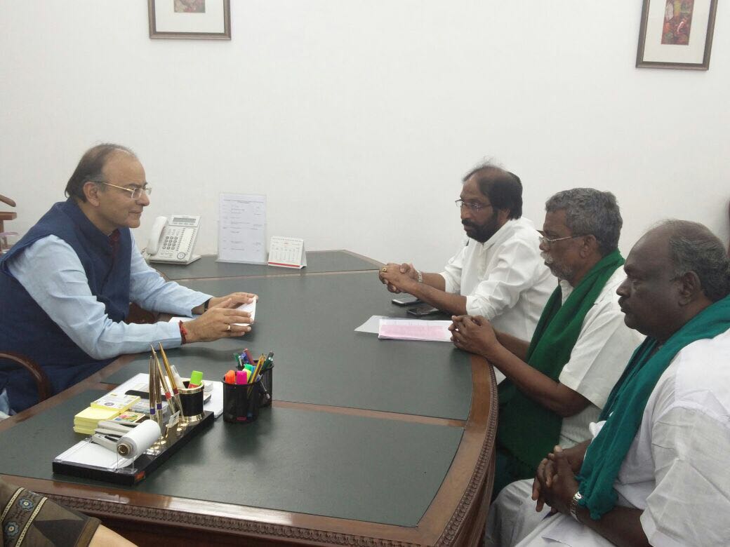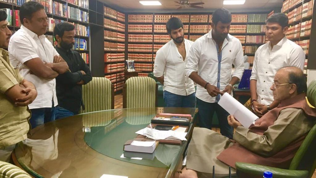 கடந்த சிலதினங்களுக்கு முன்பு தென்னிந்தியா நடிகர் சங்க தலைவர் விஷால் தலைமையில் நடிகர் பிரகாஷ்ராஜ், இயக்குனர் பாண்டிராஜ் விவசாயிகளை சந்தித்து தங்களின் ஆதரவை தெரிவித்ததையடுத்து, மத்திய நிதியமைச்சர் ஜேட்லியை சந்தித்து விவசாயிகளின் கோரிக்கைகளை முன் வைத்து மனு அளித்தனர்.