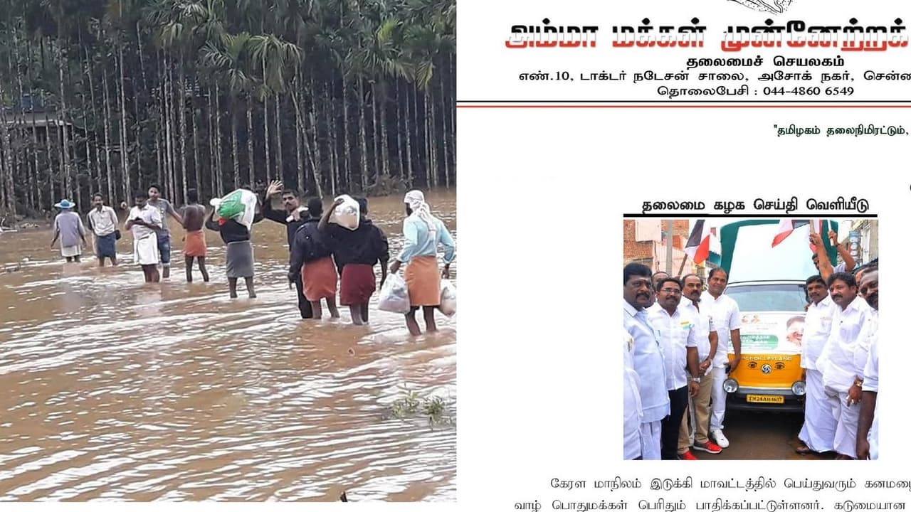 இந்நிலையில், கேரளாவில் வெள்ளத்தால் பாதிக்கப்பட்டுள்ள மக்களுக்குத் தேவையான அத்தியாவசியப் பொருட்களை அம்மா மக்கள் முன்னேற்ற கழத்தினர் இன்று இடுக்கி மாவட்ட ஆட்சியரை நேரில் சந்தித்து ஒப்படைத்தனர்.
