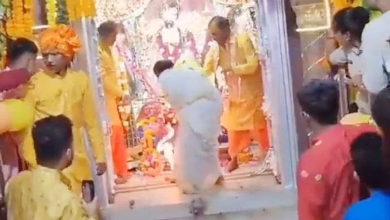 கோவிலின் கண்ணியத்தை மீறியதாக அவர் மீது வழக்கு பதிவு செய்யப்பட்டது. வைரலான வீடியோவில், ராணி ஜிதேஸ்வரி ஜன்மாஷ்டிமி ஆரத்தியின் போது தொந்தரவு செய்வதாகக் கூறப்படுகிறது. ஒரு கட்டத்தில், பூசாரிகளும், உள்ளூர் மக்களும் அவர் கோவில் கருவறைக்குள் நுழைந்த போது அர்ச்சகர்களால் வெளியே இழுத்து செல்லப்பட்டார்.