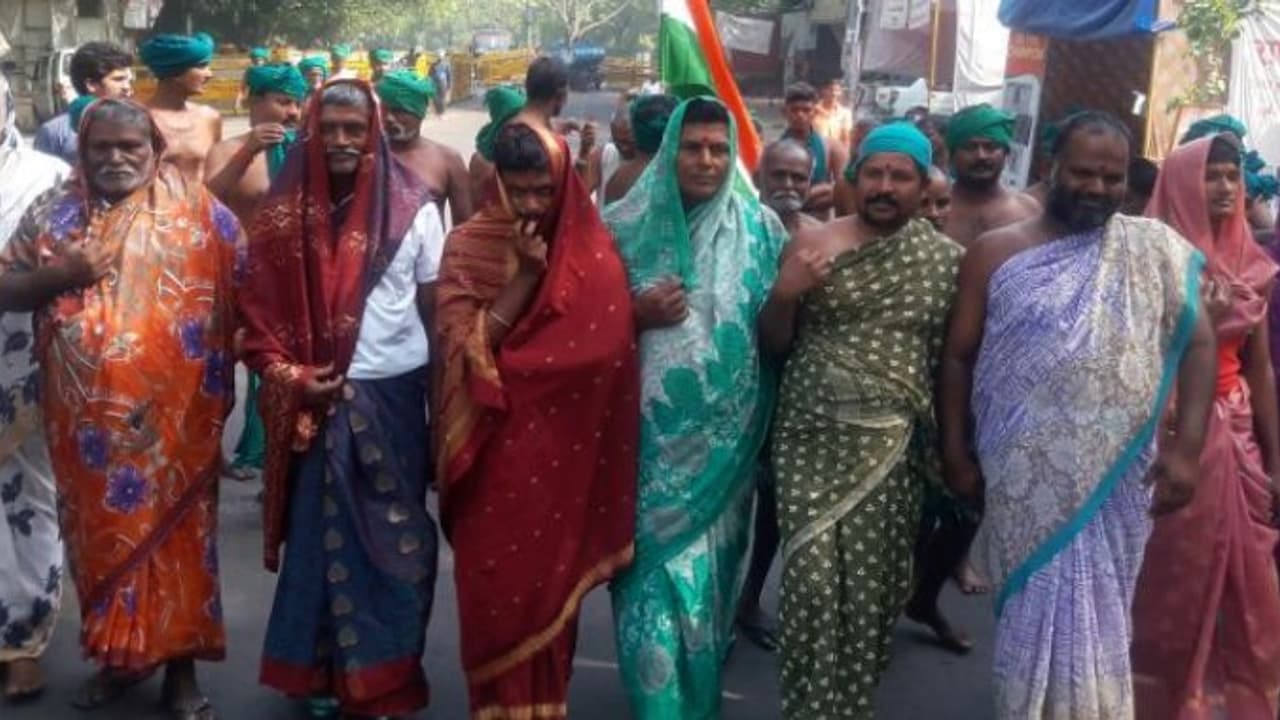 மீசை, தலைமுடியை பாதியாக மழித்தும், குட்டி கர்ணம் அடித்தும், அரை நிர்வாம், பிரதமர் அலுவலகம் அருகே நிர்வாண ஓட்டம், எலிக்கறி, பாம்பு கறி சாப்பிடுவது என நூதன போராட்டத்தில் ஈடுபட்டனர். இதையொட்டி நேற்று சேலை கட்டி போராட்டம் நடத்தினர்.