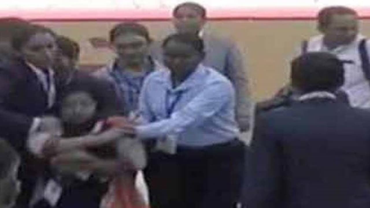 உள்ளாட்சி பிரதிநிதிகள் அதிர்ச்சியடைந்தனர். உடனே அந்த இளம்பெண்ணை, அங்கிருந்த பாதுகாப்பு அதிகாரிகள் வலுக்கட்டாயமாக இழுத்து சென்றனர். இந்த வீடியோ காட்சி தற்போது வைரலாக பரவி வருகிறது.