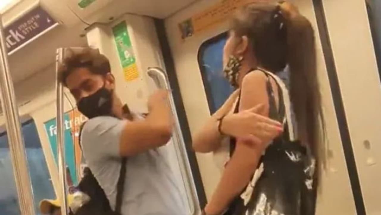 டெல்லி மெட்ரோ ரயிலில் இளைஞர் ஒருவரை இளம்பெண் ஒருவர் மாறிமாறி அடித்துக் கொள்ளும் வீடியோ சமூக வலைத்தளங்களில் வைரலாகி வருகிறது.