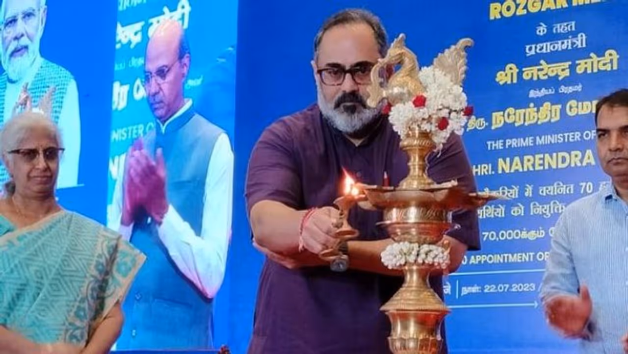 மத்திய அரசின் ரோஜ்கர் மேளா மூலம் 70 ஆயிரம் பேருக்கு அரசு வேலை கிடைத்துள்ளது. சென்னையில் நடைபெற்ற விழாவில் மத்திய மின்னணு மற்றும் தொழில்நுட்பத் துறை அமைச்சர் ராஜீவ் சந்திரசேகர் கலந்து கொண்டார்.