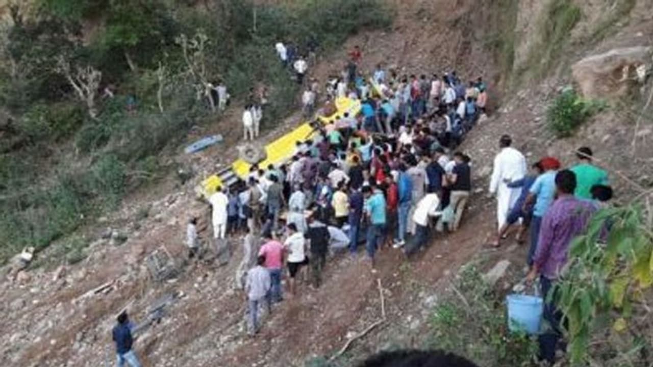 இமாச்சல பிரதேச மாநிலம் சிர்மார் மாவட்டம் சங்கரா நகரில் இன்று காலை 20-க்கும் மேற்பட்ட பள்ளி மாணவர்களை ஏற்றிக்கொண்டு பள்ளி பேருந்து சென்றிருக்கொண்டிருந்தது. அப்போது திடீரென ஓட்டுநரின் கட்டுப்பாட்டை இழந்த பேருந்து தாறுமாறாக ஓடியது. பின்னர் எதிர்பாராத விதமாக பள்ளத்தாக்கில் பேருந்து கவிழ்ந்தது.