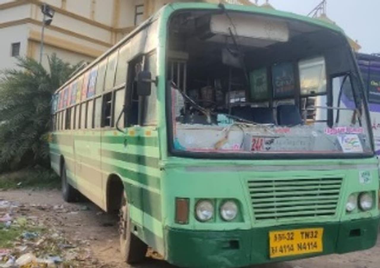 பாஜக நிர்வாகிகள் ஐயப்பன், ரவிச்சந்திரன் கைது செய்யப்பட்டுள்ளனர்.இந்நிலையில் புதுச்சேரி மாநிலத்தில் இருக்கும் வில்லியனூர் பகுதியில் இருந்து விழுப்புரம் சென்ற தமிழ்நாடு அரசு பேருந்து மற்றும் விழுப்புரத்தில் இருந்து புதுச்சேரி வந்த அரசு பேருந்து என மொத்தம் 5 பேருந்துகளின் கண்ணாடிகளை மர்ம நபர்கள் உடைத்துள்ளனர். இதுகுறித்து தகவல் அறிந்து வந்த போலீசார் பேருந்தின் மீது கல்வீசி தாக்கியவர்கள் யார் என்பது குறித்து விசாரணை நடத்தி வருகின்றனர். மேலும் பொதுசொத்தை சேதப்படுத்துவர்கள் மற்றும் வன்முறையில் ஈடுபடுபவர்கள் மீது கடுமையான நடவடிக்கை எடுக்கப்படும் என காவல்துறை எச்சரித்துள்ளது. மேலும் புதுச்சேரியில் இருந்து செல்லும் அரசு பேருந்துகள் அனைத்தும் போலீஸ் பாதுகாப்புடன் இயக்கப்பட்டு வருகிறது. புதுச்சேரியில் இருந்து விழுப்புரம் செல்லும் ரோட்டில் போக்குவரத்து பாதித்துள்ளது.