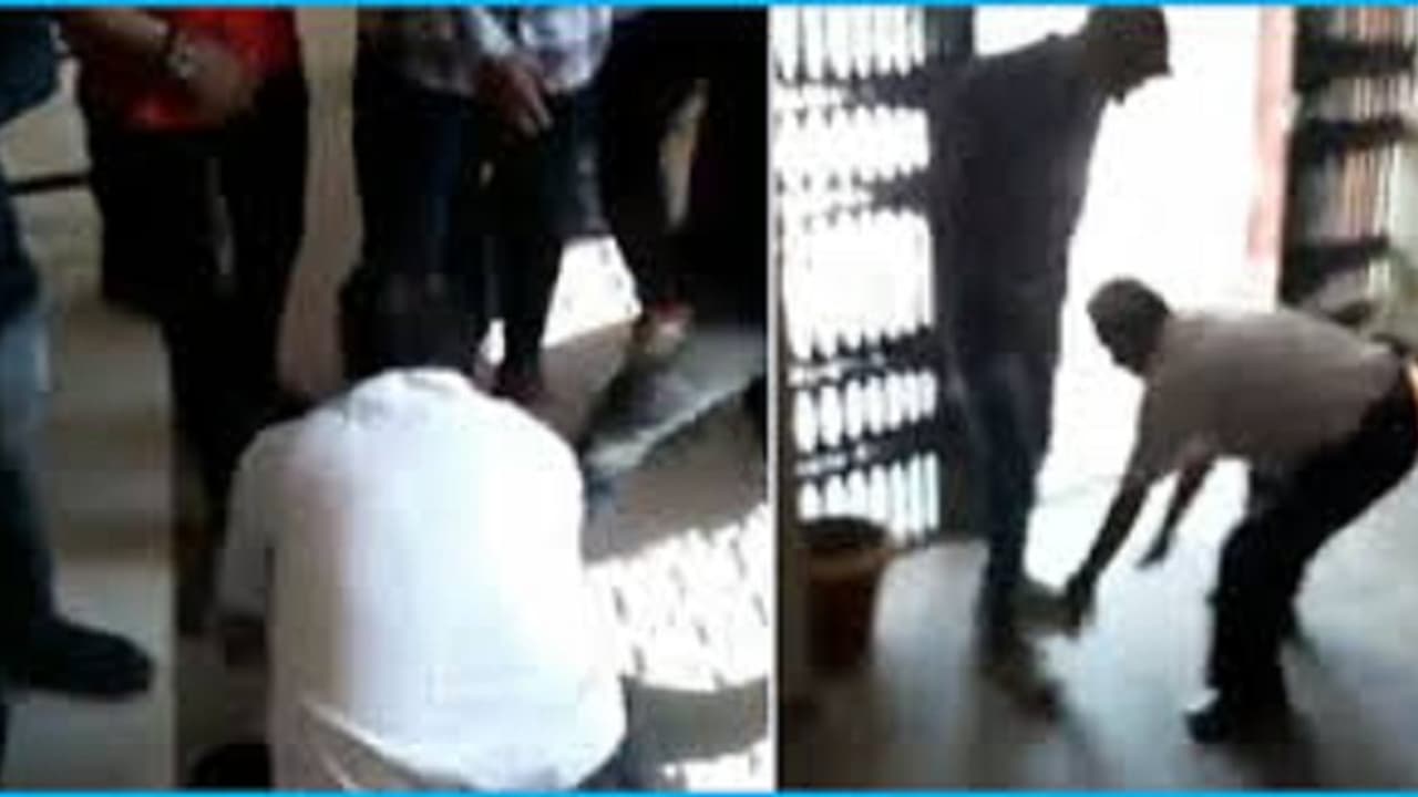 ஆர்எஸ்எஸ்-சின் மாணவர் பிரிவான ஏபிவிபி அமைப்பைச் சேர்ந்தவர்கள், கல்லூரி பேராசிரியர் ஒருவரை, தங்களின் காலில் விழ வைத்தச் சம்பவம் அதிர்ச்சியை ஏற்படுத்தியுள்ளது.