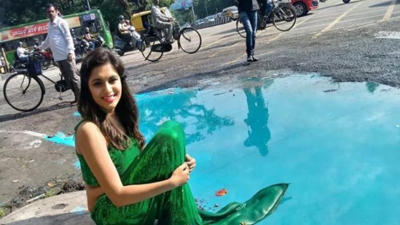 பெங்களூரில் பெய்த மழையால் உருவான மெகா பள்ளத்தை சரி செய்யக்கோரி, பள்ளத்தில் கடல் கன்னியை அமரவைத்து நூதன போராட்டம் நடத்தினர். இதை ஆர்வத்துடன் பார்த்து ரசித்தனர்.