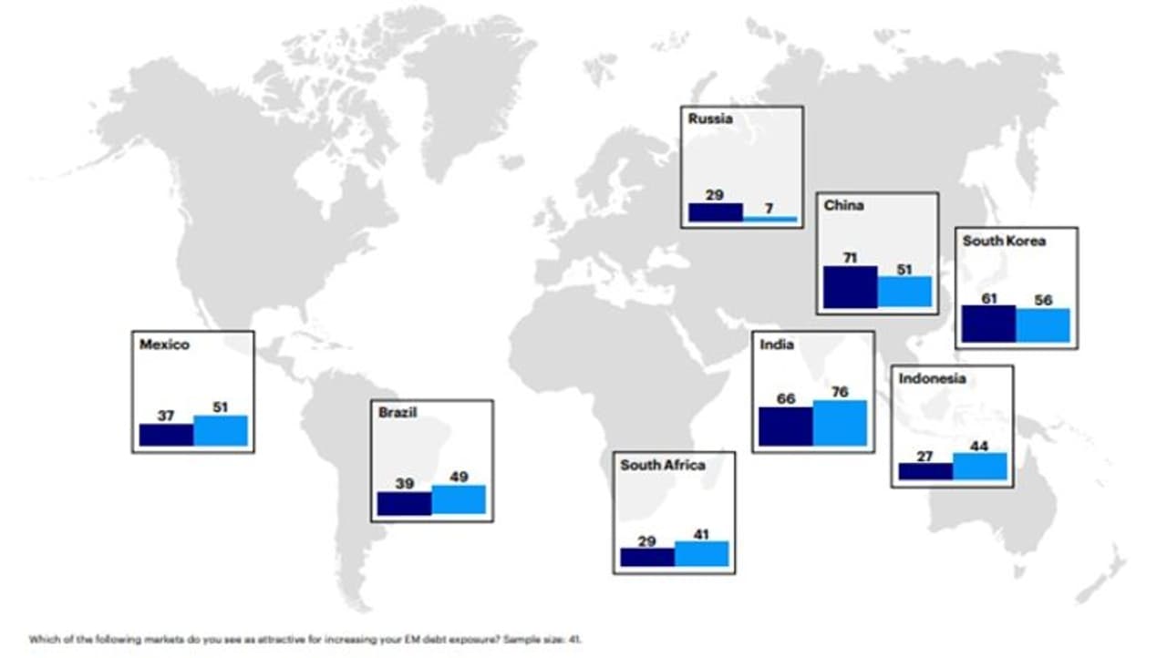 வளர்ந்து வரும் சந்தைகளில் அடுத்த மூன்று ஆண்டுகளில் தங்களுக்கு பொருந்தக்கூடிய அல்லது சிறந்த வளர்ச்சியடைந்த சந்தைகளின் செயல்திறனை 71% முதலீட்டாளர்கள் எதிர்பார்ப்பார்கள் என ஆய்வில் கண்டறியப்பட்டுள்ளது. மேலும், வளர்ந்து வரும் ஆசிய-பசிபிக் சந்தைகளுக்கான ஒதுக்கீடுகளை இந்த ஆண்டு அதிகரிக்க 29% பேர் உத்தேசித்துள்ளதாகவும் கூறப்பட்டுள்ளது.