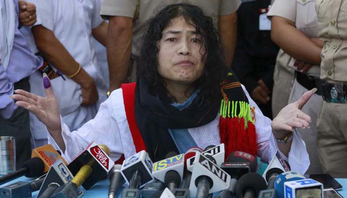உண்ணாவிரதபோராட்டம் நடத்தியவர் 44 வயதான இரோம் சர்மிளா. மணிப்பூரில் நடந்த 60 தொகுதிகளுக்கான