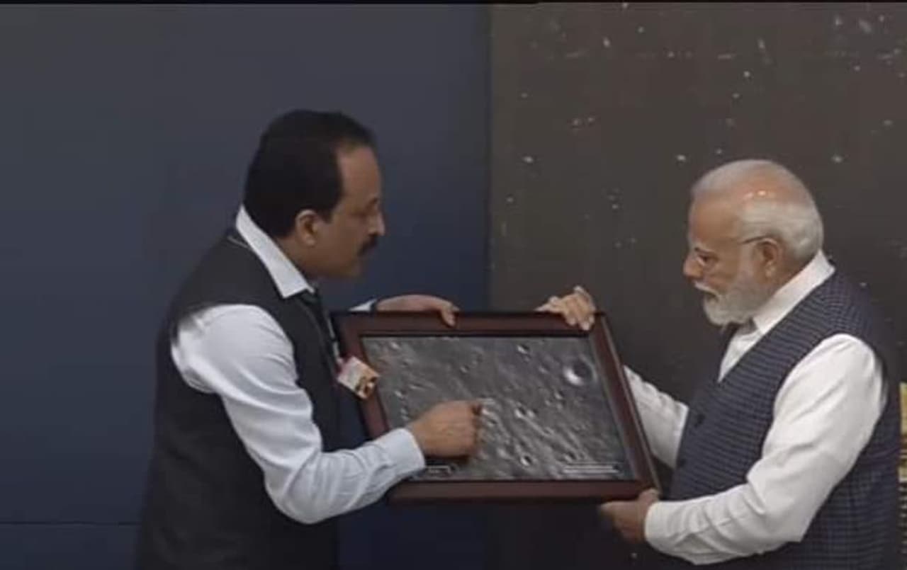 பின்னர் விஞ்ஞானிகளோடு நின்று அவர் தொடர்ச்சியாக புகைப்படங்கள் எடுத்துக் கொண்டார், பிறகு ஒரு குட்டி சந்திரயான் 3 விண்கல நினைவு பரிசை தமிழக விஞ்ஞானி வீரமுத்துவேல், பிரதமர் மோடிக்கு பரிசளிக்க, ISRO தலைவர் சோமநாத் அவர்களும் மூன்று நினைவு பரிசினை பிரதமர் மோடி அவர்களுக்கு வழங்கி நன்றி கூறினார்.