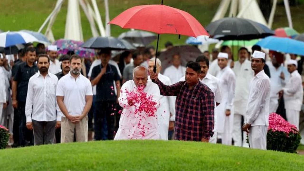காங்கிரஸ் தலைவர் மல்லிகார்ஜுன கார்கே மலர் தூவி மரியாதை செலுத்தும்போது அவரது உதவியாளர் அவருக்கு குடை பிடித்துக்கொண்டு நின்றார். பிறகு அடுத்து வந்த ராகுல் காந்தி மழையில் நனைந்தபடியே மலர் தூவி மரியாதை செலுத்தினார். இந்த புகைப்படங்கள் சமூக வலைத்தளங்களில் வைரலாகி வருகிறது.பிரதமர் நரேந்திர மோடி இன்று வெளியிட்ட ட்விட்டர் பதிவில், ஜவஹர்லால் நேருவின் நினைவு நாளில், நமது முன்னாள் பிரதமர் பண்டித ஜவஹர்லால் நேருவுக்கு அஞ்சலி செலுத்துகிறேன்" என்று பதிவிட்டுள்ளார்.