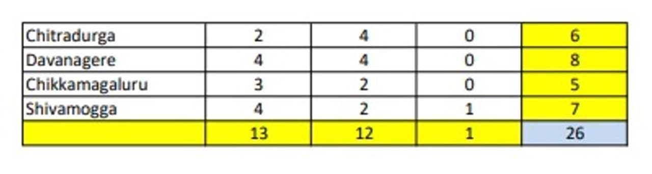 மத்திய கர்நாடகாவில்மொத்தமுள்ள 26 இடங்களில் பாஜக 13 இடங்களையும் காங்கிரஸ் 12 இடங்களையும் ஜேடி(எஸ்) 1 இடத்தையும் பெறும் என்று கணிக்கப்பட்டுள்ளது. பாஜகவின் கோட்டையாகக் கருதப்படும் மத்திய கர்நாடகாவில் பாஜகவுக்கு 13 இடங்கள் கிடைக்கும் என கருத்துக்கணிப்பு கூறுகிறது.