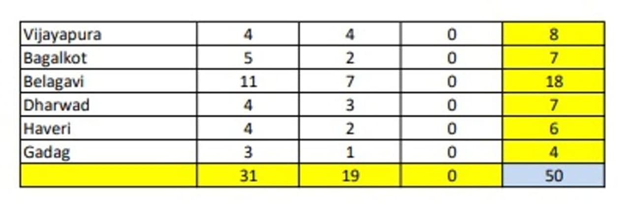 மும்பை கர்நாடகத்தில் மொத்தமுள்ள 50 இடங்களில் பாஜகவுக்கு 31 இடங்களையும் காங்கிரஸ் கட்சி 19 இடங்களையும் கைப்பற்றும் என்று கணிக்கப்பட்டுள்ளது. மேலும் ஜேடி(எஸ்) கட்சிக்கு இங்கு ஒரு இடம் கூட கிடைக்காது என கருத்துக்கணிப்பு கூறுகிறது.
