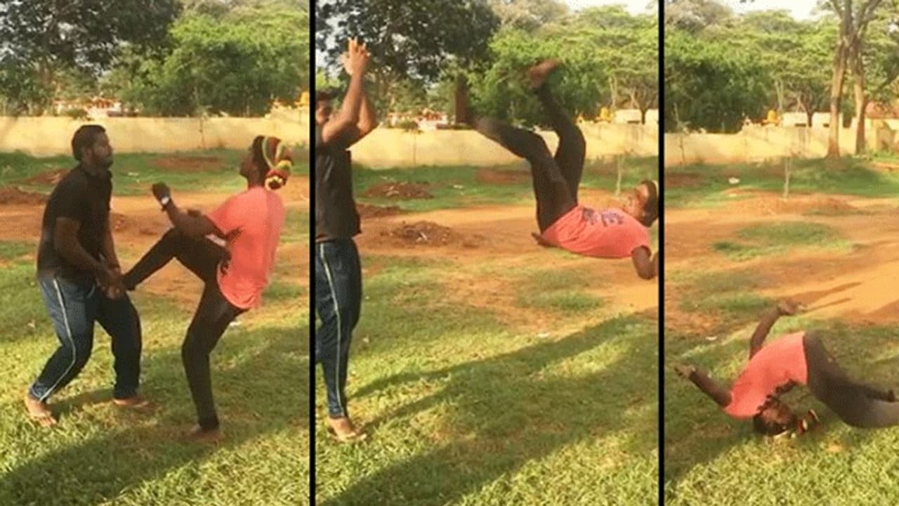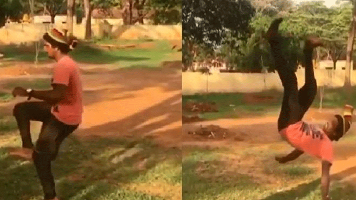 இந்நிலையில், கர்நாடகா மாநிலம் துமகூரு பகுதியைச் சேர்ந்த இளைஞர் குமார் (19). இவர் இசை கச்சேரிகளில் நடனமாடி வருகிறார். நடனத்தில் வித்தியாசமான முறையை கையாண்டு ரசிகர்கள் மனதில் இடம்பிடித்தார். இதனிடையே, ஏதாவது சகாசம் செய்து வீடியோ பதிவிட வேண்டும் என தீர்மானித்தார். அதன்படி, அவர் தனது நண்பரின் உதவியுடன் சாகசத்தில் ஈடுபட முயற்சித்தார். அதாவது, சிறிது தொலைவில் இருந்து ஓடிவரும் குமார் தனது நண்பரின் உதவியுடன் தரையில் கைகள் படாமல் பின்புறமாக பல்டி அடிக்க முயற்சித்தார்.