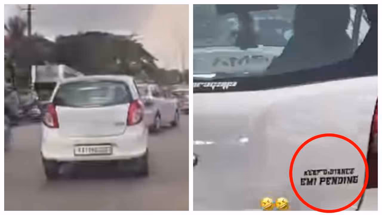 மங்களூருவில் மாருதி ஆல்டோ காரின் பின்புறம் ஒட்டப்பட்டிருந்த இடைவெளி விடுங்கள் EMI கட்ட வேண்டியுள்ளது என்ற ஸ்டிக்கர் சமூக ஊடகங்களில் வைரலாகியுள்ளது. வாகன கடனின் சுமையை சாலைப்பாதுகாப்புச் செய்தியுடன் நகைச்சுவையாக பலரையும் கவர்ந்துள்ளது.
