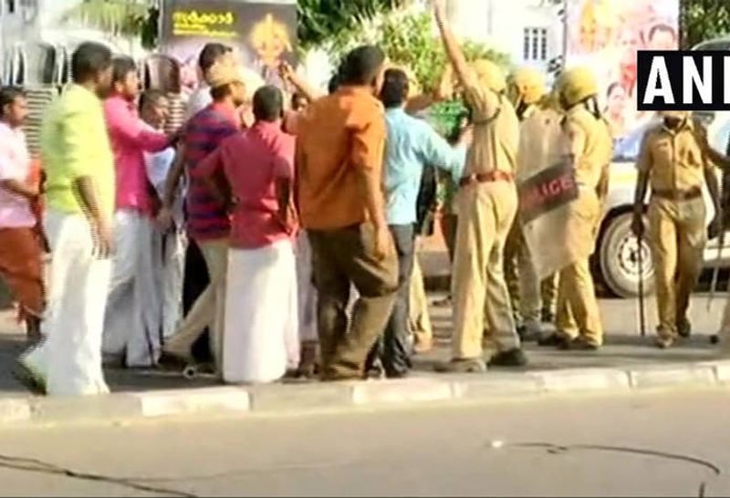 இதையடுத்து சபரிமலைகோவிலுக்குபெண்கள்சென்றதற்குஎதிர்ப்புதெரிவித்து, பல்வேறுஇடங்களில்வன்முறைவெடித்தது. தலைநகர்திருவனந்தபுரத்தில்உள்ளதலைமைசெயலகத்துக்குவெளியேபாஜககண்டனபேரணிநடத்தினர். இதில்வன்முறைவெடித்தது. ஊடகத்தினர்மீதுபோராட்டக்காரர்கள்தாக்குதல்நடத்தினர். கொல்லத்தில்நடந்தபோராட்டத்திலும்வன்முறைஅரங்கேறியது.