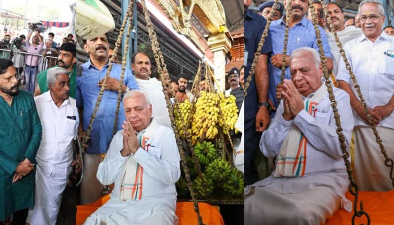 கேரளா ஆளுநர் ஆரிப் முஹம்மது கான் குருவாயூர் கோவிலில் துலாபாரம் காணிக்கை செலுத்தினார்.