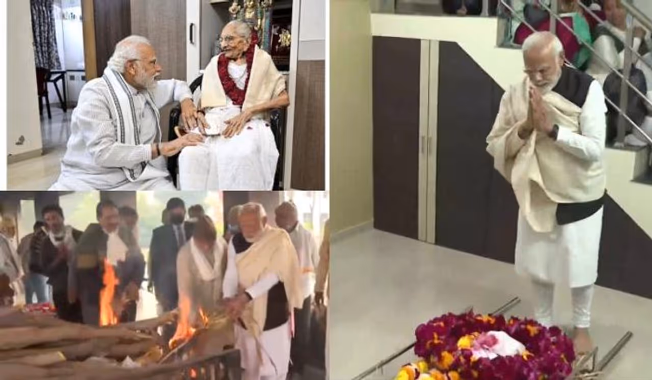இதன் பின்னர் தனது தாயார் உடலை பிரதமர் மோடி சோகத்துடன் தோளில் சுமந்து சென்று வாகனத்தில் ஏற்றினார். அந்த வாகனத்தில் மோடியும் பயணம் செய்தார். இதையடுத்து, தாயாரின் உடல் உடனடியாக இறுதிச் சடங்கு நிகழ்வுகள் நடைபெற்றது.