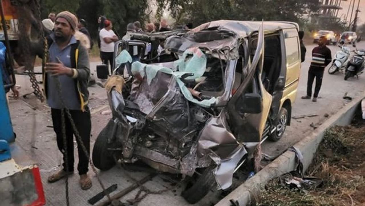 மகாராஷ்டிர மாநிலம் ராய்காட் மாவட்டத்தில் மும்பை-கோவா நெடுஞ்சாலையில் உள்ள மங்கான் பகுதியில் எதிர்பாராத விதமாக காரும் லாரியும் நேருக்கு நேர் மோதி விபத்துக்குள்ளானது. இந்த விபத்தில் அப்பளம் போல் நொறுங்கியது.