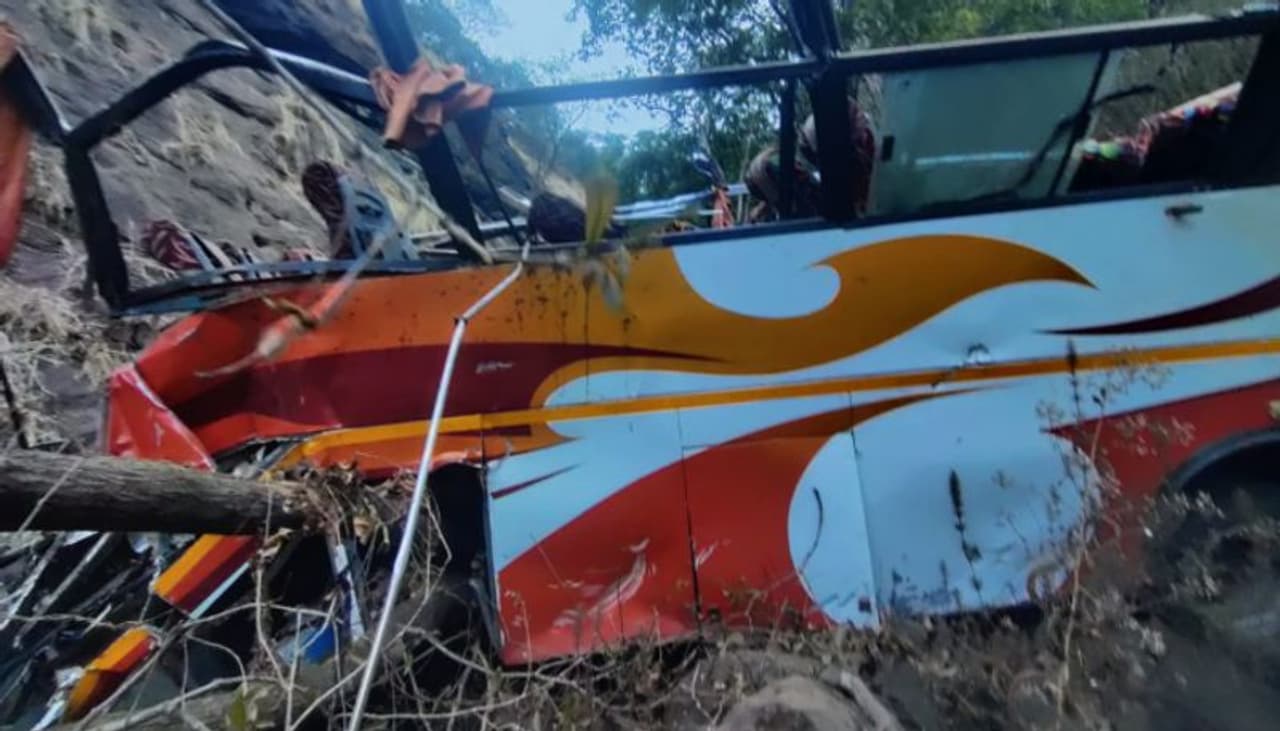 மகாராஷ்டிராவில் சாலையோர பள்ளத்தில் பேருந்து கவிழ்ந்து விபத்துக்குள்ளானது. இந்த விபத்தில் 12 பேர் உடல் நசுங்கி பரிதாபமாக உயிரிழந்தனர். 25 பேர் படுகாயமடைந்தனர்.