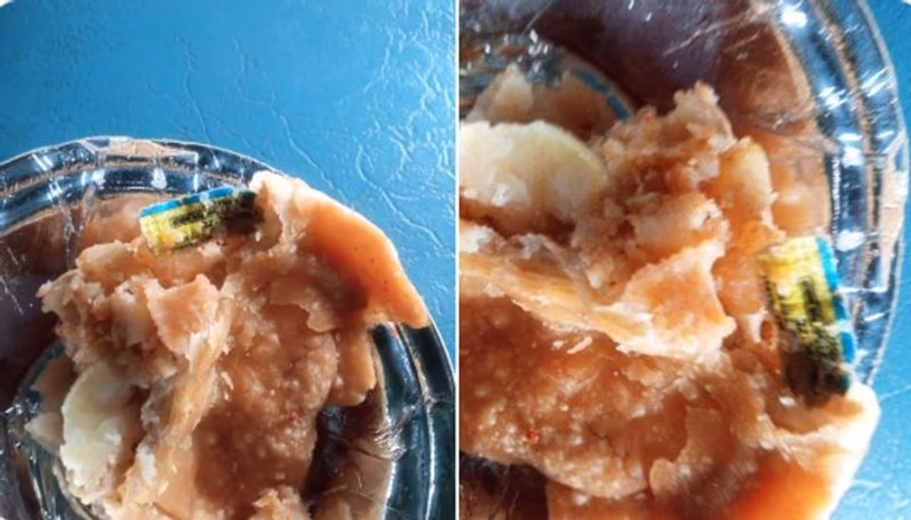 ரயிலில் பயணித்த ஒருவருக்கு வழங்கப்பட்ட சமோசாவில் மஞ்சள் காகிதம் ஒன்று கிடந்த சம்பவம் பரபரப்பை ஏற்படுத்தி உள்ளது.