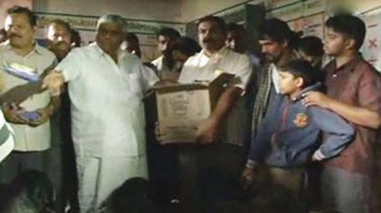 அப்போது அவற்றை மக்களின் கைகளில் தராமல் நாய்களுக்கு தூக்கிப் போடுகிற மாதிரி தூக்கி எறிந்துள்ளார் ரேவன்னா. பசியின் கொடுமையில் இருந்த மக்கள், அமைச்சர் தூக்கி எறிந்த பிஸ்கட் பாக்கெட்டுகளை வாங்கிச் சாப்பிட்டனர். ஆனால், அவர் தூக்கி எறிந்த பிஸ்கட் பாக்கெட்டுகளைச் சிலர், மீண்டும் அவர் இருந்த திசை நோக்கித் தூக்கி எறிந்தனர். இந்தக் காட்சி, தற்போது சமூக வலைதளங்களில் வைரலாகி சர்ச்சையை ஏற்படுத்தியுள்ளது.