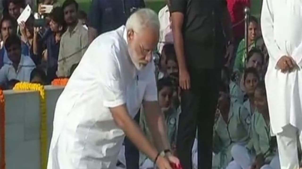 modi and president tribute to gandhi