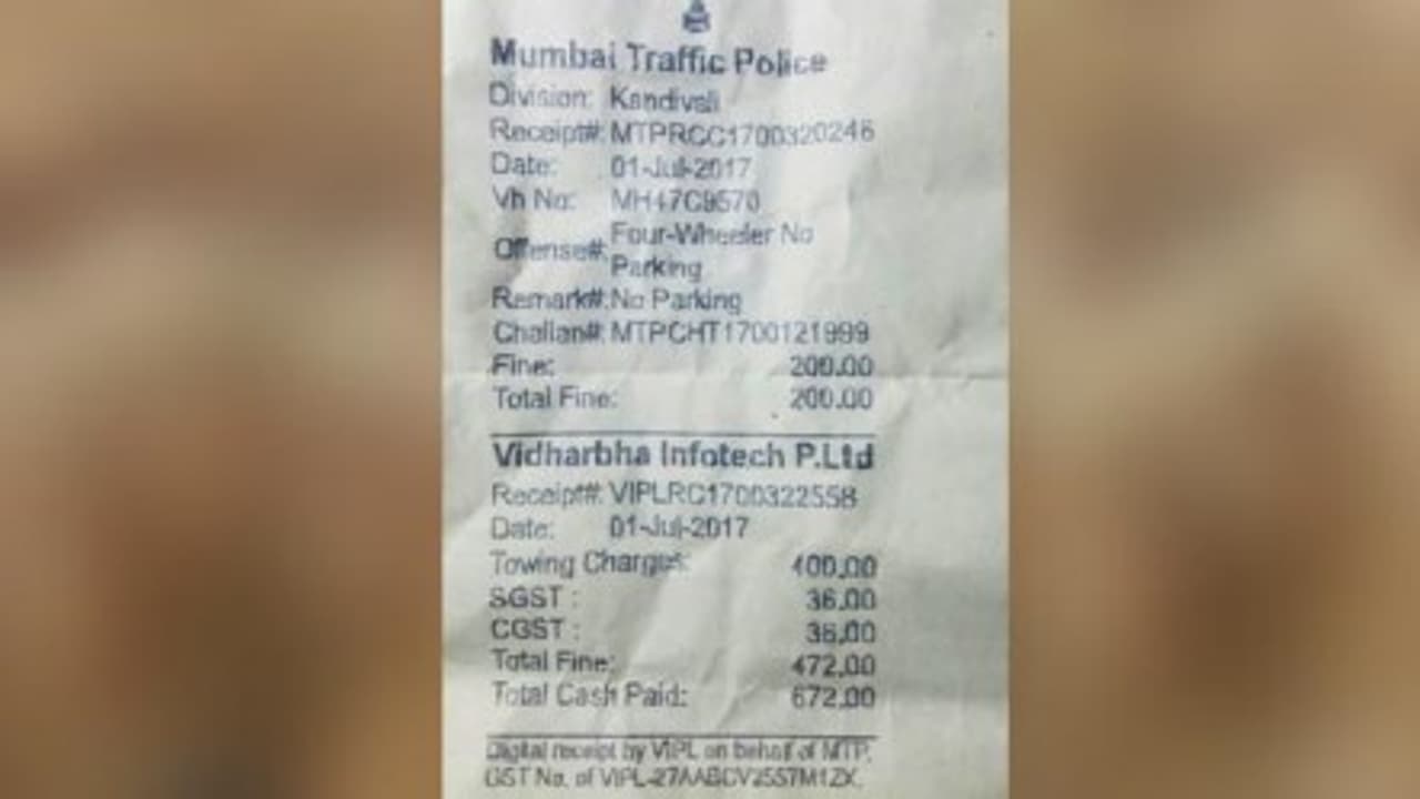 இந்நிலையில் மும்பையில் நோ பார்க்கிங் பகுதியில் நிறுத்தப்பட்டிருந்த காருக்கு அபராதம் விதித்த போக்குவரத்து போலீசார், அந்த அபராதத் தொகைக்கு ஜிஎஸ்டி வரி போட்டுள்ளனர்.
