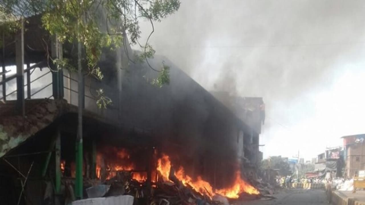 ரயில் நிலையத்தில் ஏற்பட்ட தீ விபத்து காரணமாக அப்பகுதியில் கரும் புகை சூழ்ந்து காணப்படுகிறது.