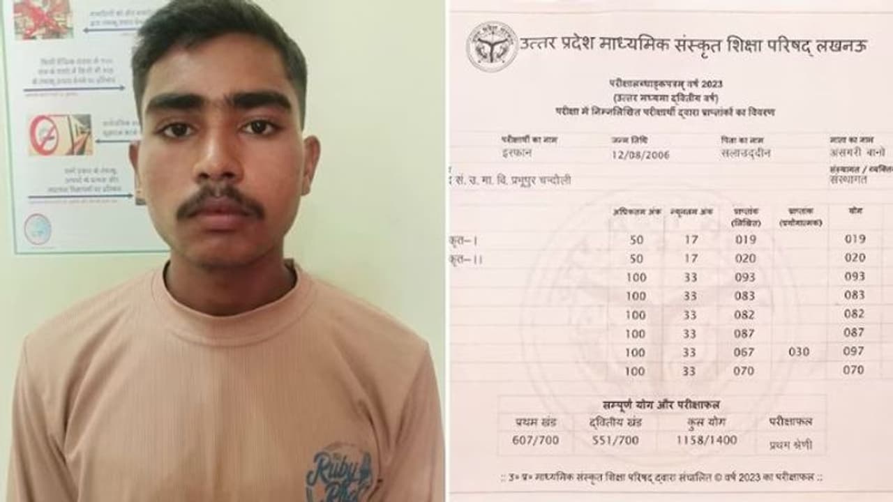 உத்தரபிரதேச மாநிலம், சந்தோலி மாவட்டத்தில் விவசாய தொழிலாளி சலாவுதீனின் 17 வயது மகன் முகமது இர்பான், உத்தரபிரதேச மத்தியமிக் சமஸ்கிருத சிக்ஷா பரிஷத் வாரியத்தின் உத்தர் மத்யமா - II (12 ஆம் வகுப்பு) தேர்வில் 82.71% மதிப்பெண் பெற்றுள்ளார். அதுவும் சுமார் 13,000 எழுதிய தேர்வில் முதலிடம் பெற்றிருக்கிறார்.