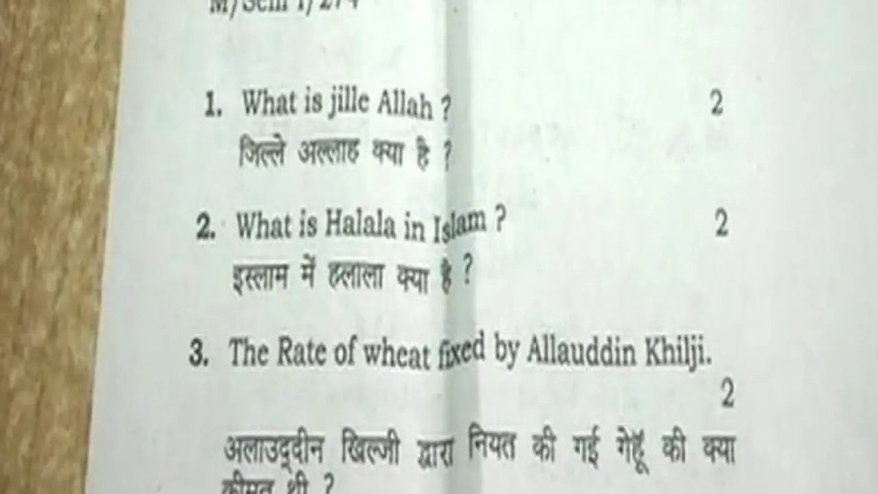 இதில் வரலாறு பிரிவு மாணவர்களுக்கு முத் தலாக், ஹலால், அலாவுதீன் கில்ஜி குறித்து கேள்விகள் கேட்கப்பட்டதால் மாணவர்கள் குழப்பமடைந்தனர்.