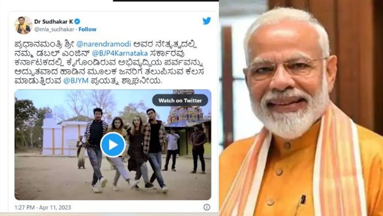 கர்நாடக சுகாதாரத் துறை அமைச்சர் கே சுதாகர் அந்த வீடியோவைப் பகிர்ந்துகொண்டு, “இந்த அற்புதமான பாடலின் மூலம் கர்நாடகாவின் வளர்ச்சித் திருவிழாவை மக்களிடம் கொண்டு சேர்க்க உள்ளோம். பிரதமர் மோடியின் சாதனைகள் பொதுமக்களிடையே கொண்டு சேர்க்க உள்ளோம்” என்று பதிவிட்டுள்ளார்.