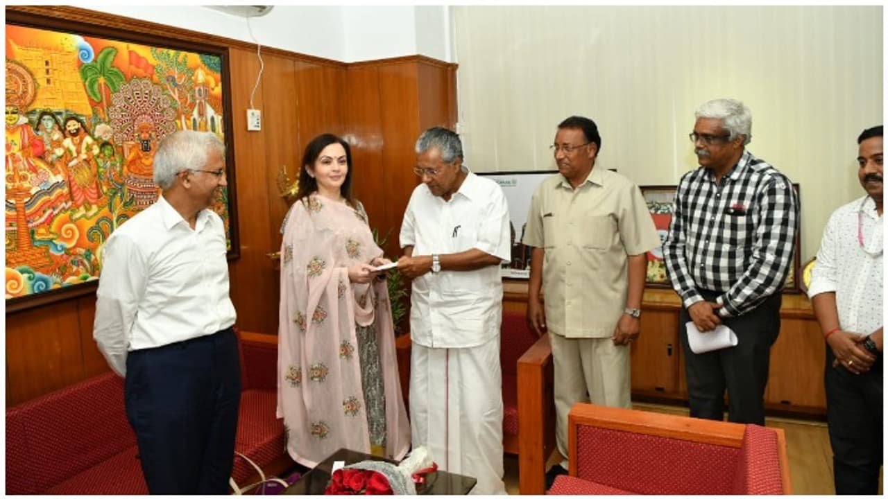 இதன் தொடர்ச்சியாக ரிலையன்ஸ் அறக்கட்டளையின் தலைவர் நீத்தா அம்பானி கேரள முதலமைச்சர் பினராயி விஜயனை சந்தித்து, 21 கோடிக்கான காசோலையை அவரிடம் கொடுத்தார். இதைதொடர்ந்து அவர் செய்தியாளர்களிடம் பேசுகையில்... “கேரளாவில் நம்முடைய சகோதரர்கள் மிகப் பெரிய துன்பத்தில் சிக்கியுள்ளனர். அவர்களுக்கு உதவுவது நம் கடமை. அதுமட்டுமல்லாமல் ஒரு கார்ப்பரேட் அறக்கட்டளைக்கு இதில் கூடுதல் பங்கு இருக்கிறது என்று தெரிவித்துள்ளார்.